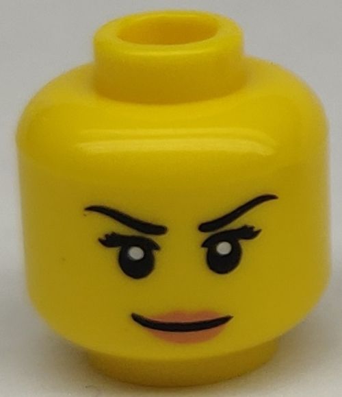3626cpb0278 – Minifigure, Head Reddish Brown Eyebrows, White Pupils, Lopsided Smile with Black Dimple Pattern – Hollow Stud