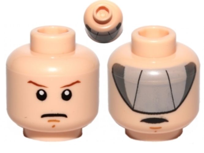 3626cpb0526 – Minifigure, Head Male Stern Black Eyebrows, White Pupils, Frown, Scar Across Left Eye, Chin Dimple Pattern – Hollow Stud