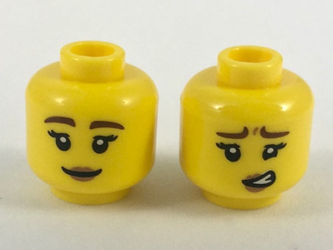3626cpb1028 – Minifigure, Head Dual Sided Black Eyebrows, Lopsided Smile / Open Mouth Scared Pattern (Emmet) – Hollow Stud