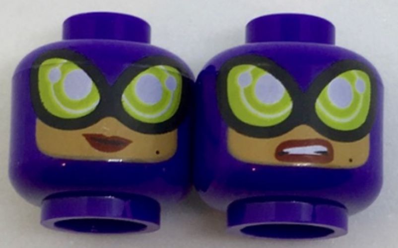 3626cpb1754 – Minifigure, Head Dual Sided Alien Snake with Black Wavy Lines, 2 Red Eyes and 2 White Fangs / 1 Red Eye and 2 White Fangs on Side Pattern – Hollow Stud